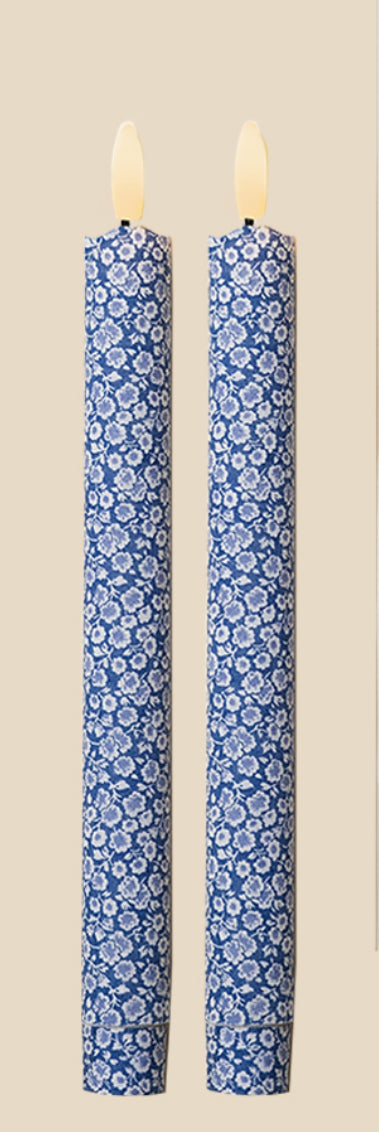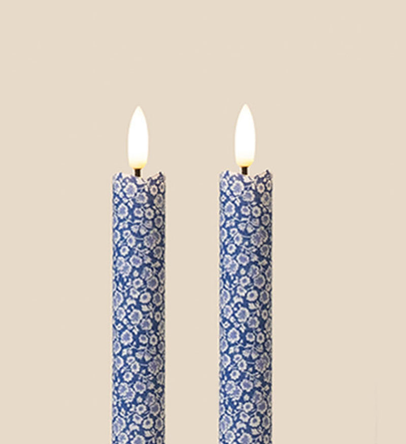 Morning Gloryblends white blooms with a soft, mid-blue ground for a look that’s fresh, timeless and quietly romantic. This flameless LED taper candle brings gentle light to any setting—no wax, no mess, just effortless charm from dawn to dusk.