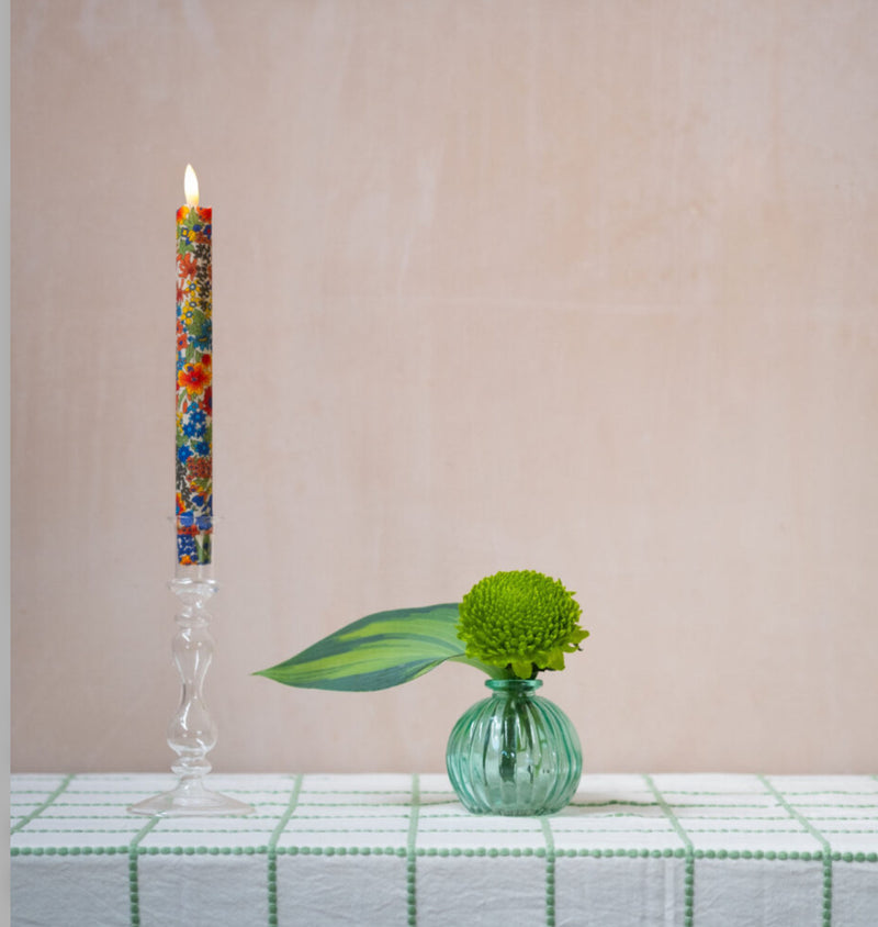 This flameless LED taper candle adds a fresh pop of colour and warm glow to any space—no wax, no fuss, just effortless charm.