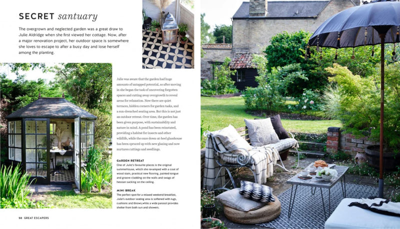 There are a multitude of different ways in which we use our outside spaces, and in Gardens for the Soul Sara Bird and Dan Duchars explore ways to create and style a haven that will suit your lifestyle. Day Dreamers seek solitude and a therapeutic experience, and Home Harvesters use their garden space to grow flowers or fruit and veg; while Garden Partiers put their outside space to work as an entertaining zone for friends and family and Great Escapers aim to recreate a chilled holiday vibe at home. Sara and Dan visit real-life gardens that fall into these categories, from tiny patios to larger spaces, to glean ideas, tips and inspiration. With a focus on sustainability and reclaimed materials, there are suggestions for choosing garden elements, from décor to lighting to furniture and accessories, as well as easy craft projects that add quirky personal touches.